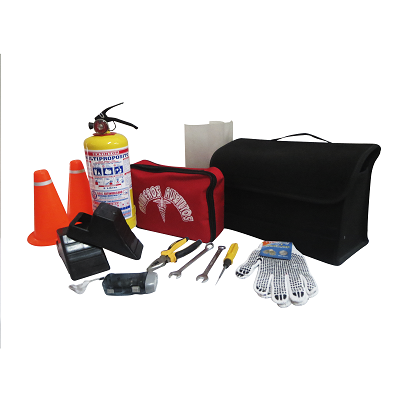 Un kit de carretera es un conjunto de elementos necesarios para atender una eventualidad en nuestro vehículo. El artículo 30 de la ley 769 del 2002 establece el equipo reglamentario que debe tener un automóvil: gato con capacidad para elevar el vehículo, una cruceta, dos señales de carretera en material reflectivo, un botiquín de primeros auxilios, un extintor, dos tacos, caja de herramientas, una llanta de repuesto y una linterna.